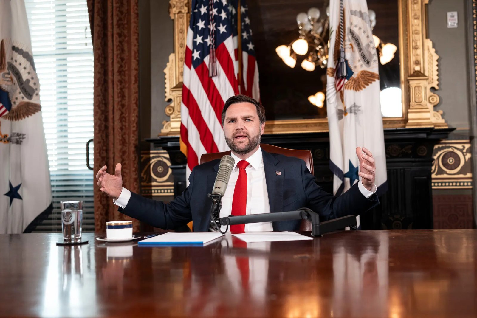 Desde su despacho en la Casa Blanca, Vance invitó a otros altos cargos del gobierno a elogiar a Kirk y a fustigar a la “extrema izquierda”. El programa se emitió en las pantallas de televisión de la sala de reuniones de la Casa Blanca y en varios despachos del ala oeste.